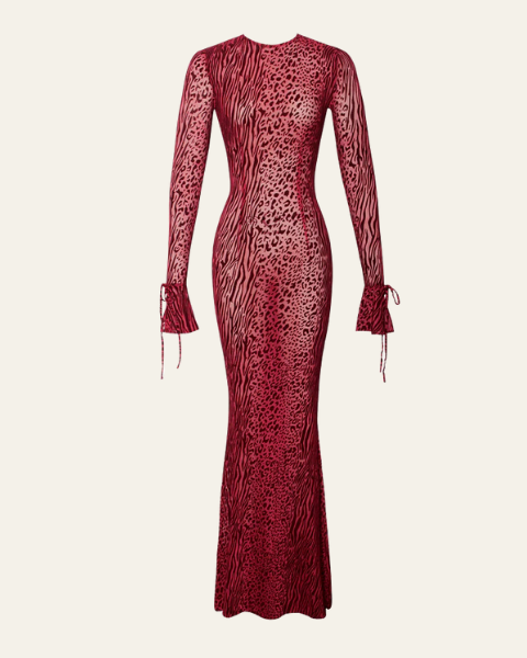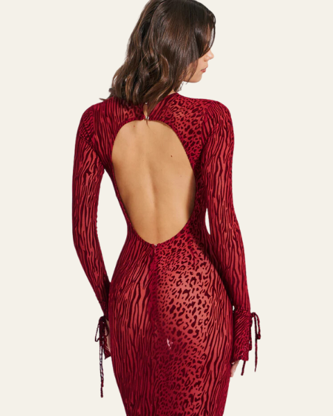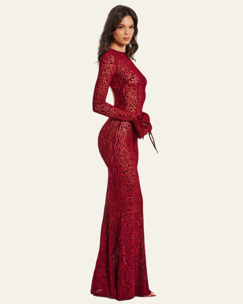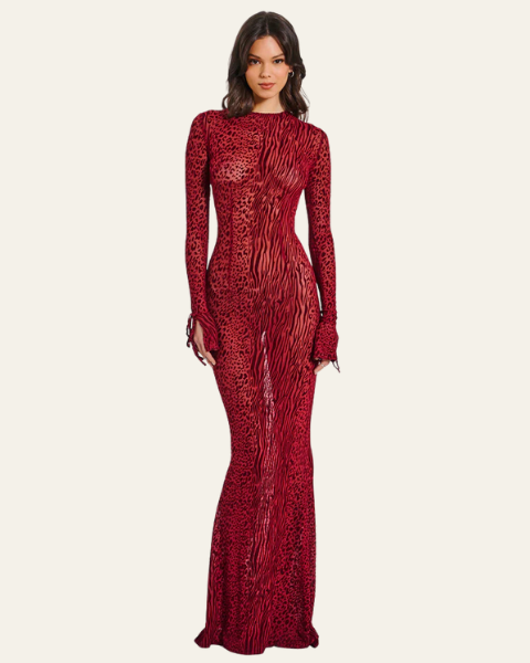 Questo abito lungo propone una silhouette sagomata e una stampa animalier che conferisce carattere alle serate più raffinate. Realizzato con tessuti selezionati per una caduta impeccabile e un comfort duraturo, si presta a essere indossato con tacchi alti per un look elegante che resta impeccabile fino a tarda notte. L’estetica Aurazio unisce raffinatezza classica e gusto contemporaneo, pensata per chi cerca stile senza tempo.