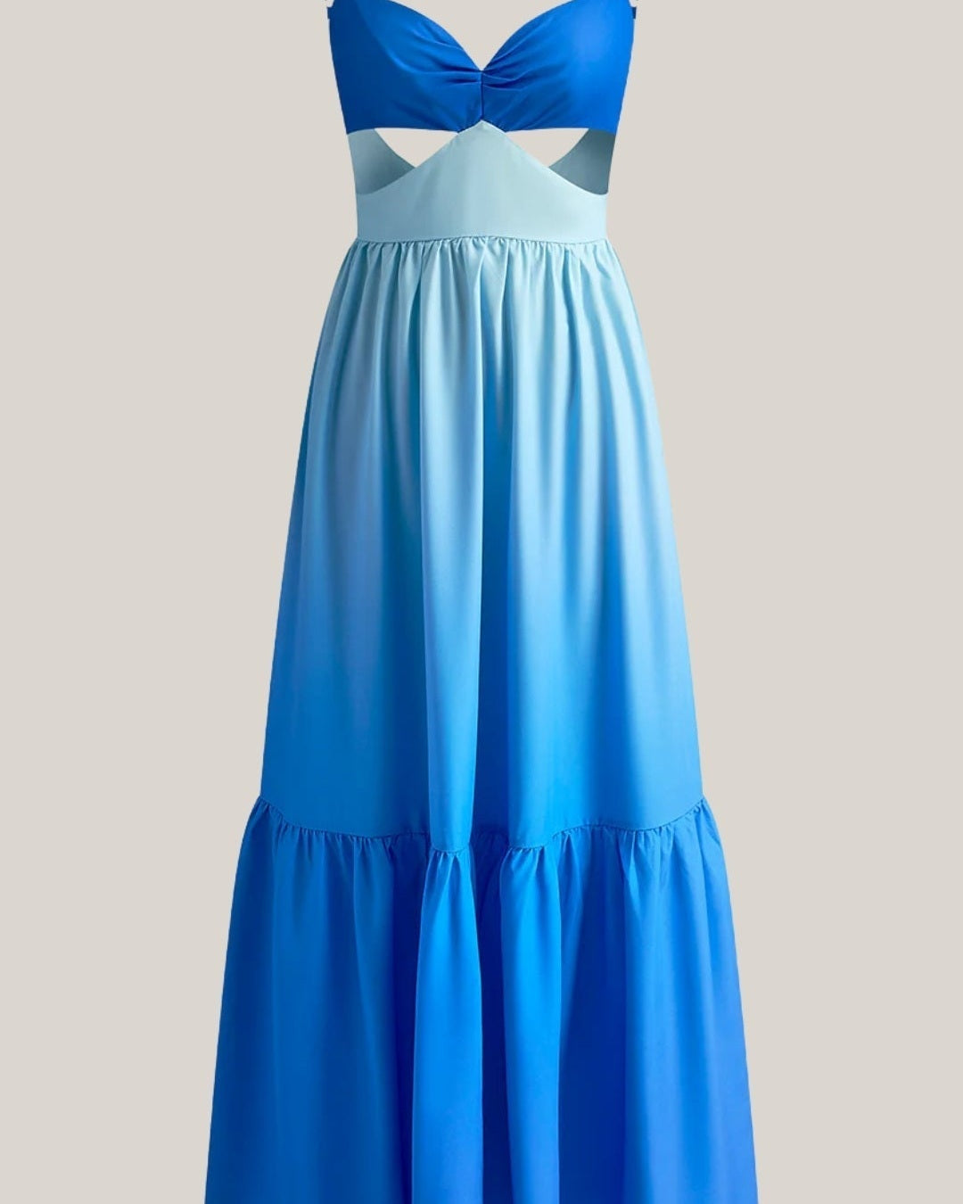 Lascia che ogni passo diventi un momento con l'Abito lungo con tagli Aurazio. Il design ombré richiama l’andare del mare: corpetto con tagli che aggiunge un tocco giocoso e una gonna a strati fluida che segue i tuoi movimenti. Realizzato in tessuto leggero, è pensato per accompagnarti in avventure al sole, dalla spiaggia a una cena al tramonto, offrendo un look da dea in ogni occasione.