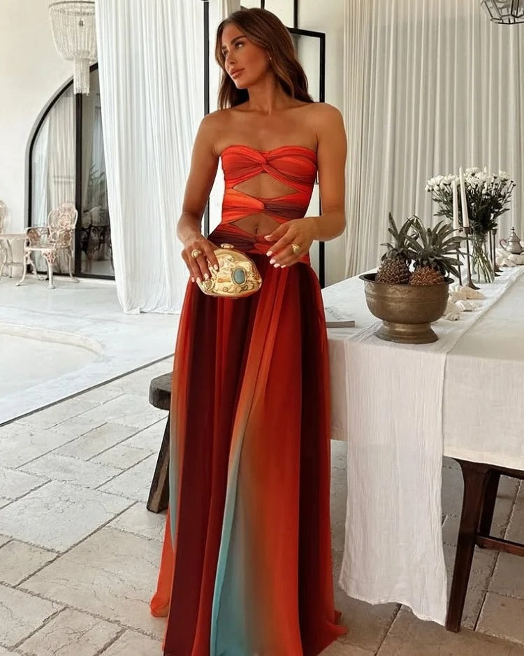 Abito lungo Mirage Fireheart di Luna offre leggerezza ideale per giornate calde e serate da sogno. Senza spalline, presenta una silhouette ariosa con dettagli Hollow-Out e una raffinata linea a-line che accompagna i movimenti con grazia. Leggero e confortevole, il tessuto è perfetto per fughe estive, cene al mare o passeggiate al sole; Aurazio cura ogni dettaglio per un look elegante e contemporaneo.