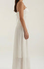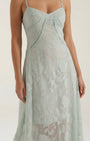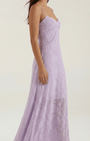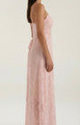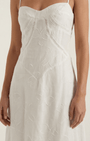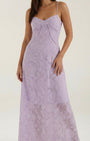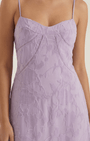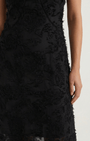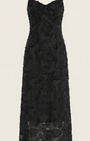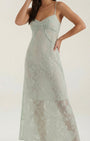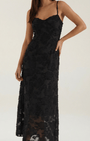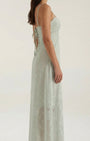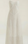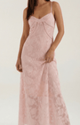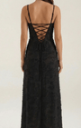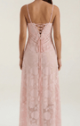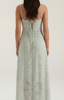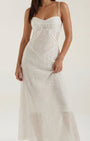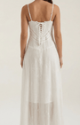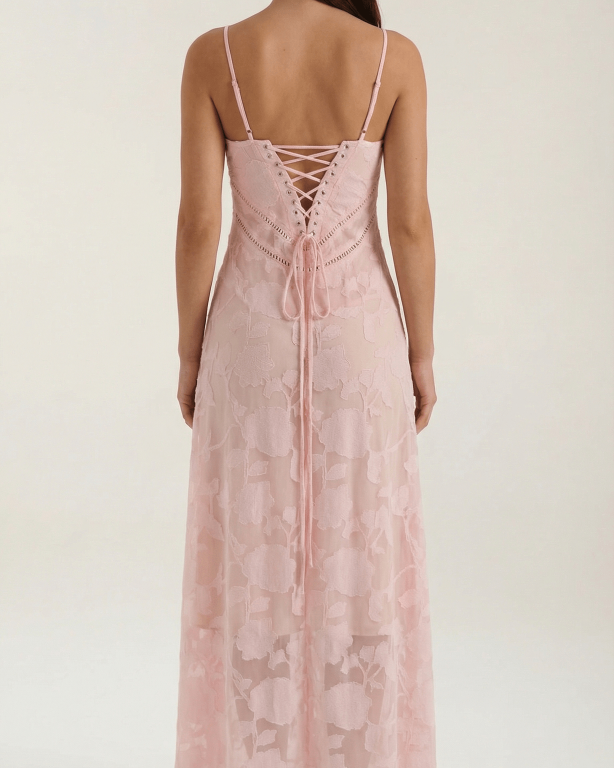 Riflette un’eleganza nuziale rivisitata, l'Abito Maxi in Pizzo Aurazio combina raffinatezza e comfort con una silhouette fluida che accompagna ogni movimento. Il corpetto presenta una scollatura a cuore con sottili spalline e un motivo floreale jacquard che conferisce texture e profondità, mentre la linea lunga al pavimento scivola con grazia. Nota: il tessuto è leggermente trasparente sotto il punto vita, quindi è consigliato indossare un intimo adeguato.