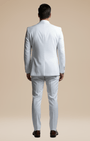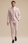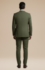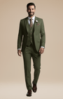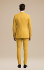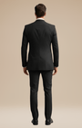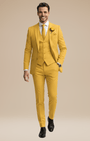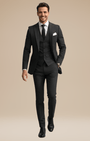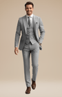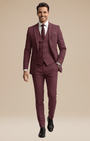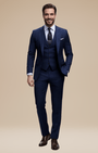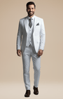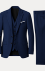 - Set 3 pezzi: giacca monopetto a due bottoni, gilet a cinque bottoni e pantaloni a fronte liscio con passanti e piega stirata.