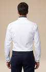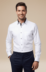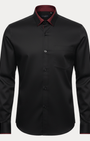Una camicia dallo stile deciso e sofisticato, pensata per chi vuole distinguersi con classe. Realizzata per l'uomo moderno che cerca qualità, comfort e un tocco di raffinatezza quotidiana. Il design mette in risalto dettagli a contrasto su colletto e polsini, per un effetto contemporaneo ma raffinato. La linea slim garantisce una vestibilità impeccabile senza sacrificare la libertà di movimento. È l'ideale per occasioni formali, serate eleganti o look business casual, adattandosi facilmente a pantaloni sartoriali o jeans scuri. La tessitura e la cura dei particolari ne fanno un capo che resta nel guardaroba stagione dopo stagione. Consigliamo lavaggio delicato a bassa temperatura per preservarne colore e forma.
