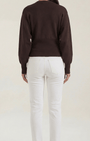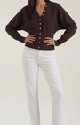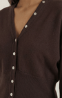 Questo cardigan in maglia incarna una raffinatezza sobria, dove linee pulite incontrano dettagli curati. Presenta uno scollo a V profondo con rifiniture a coste e bottoni perlati che conferiscono un tocco femminile, mentre il taglio corto e le spalle leggermente scese bilanciano struttura e comfort. Aurazio propone un capo di qualità sartoriale, ideale per look sobri ma moderni in ogni occasione.