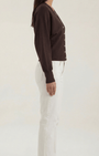 - Silhouette corta e spalle leggermente scese per un equilibrio tra struttura e comfort