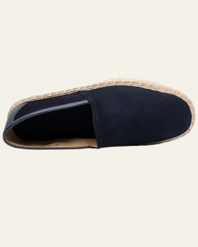 Le espadrillas in camoscio blu navy combinano raffinatezza e comfort leggero. La tomaia in camoscio morbido, la fodera in pelle di mucca e la suola in iuta naturale assicurano traspirabilità e una silhouette essenziale, perfette per accompagnarti tra caffè sulla spiaggia e passeggiate serali. Indicate per abbinarsi a pantaloni di lino chiari o shorts su misura, offrono una versione elegante e rilassata del tempo libero estivo.