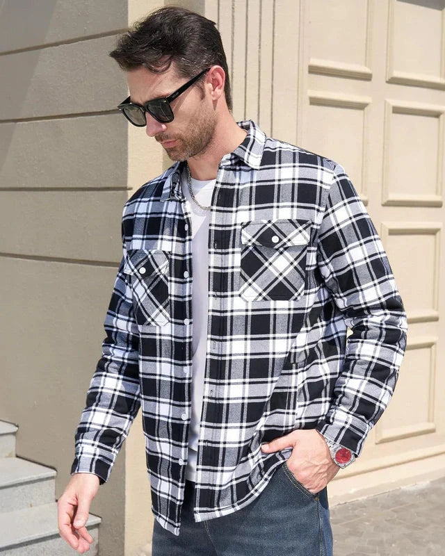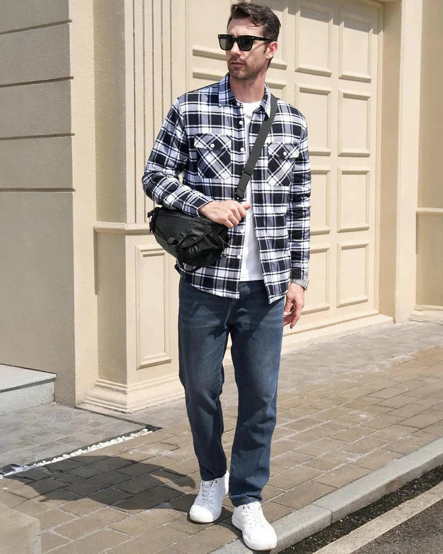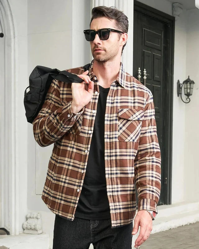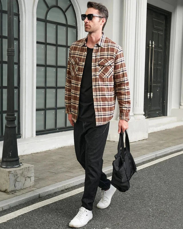Calda, versatile e resistente, la giacca Aurazio in flanella con fodera sherpa offre calore affidabile senza rinunciare allo stile. Realizzata in cotone brushato premium, garantisce una morbidezza al tatto e una lunga durata, mentre l'interno sherpa aggiunge isolamento extra per restare al caldo nelle mattine fredde o nelle serate ventose. Pensata per attività all'aperto, weekend fuori porta o passeggiate in tempo freddo, veste con un taglio rilassato che facilita la stratificazione.