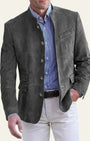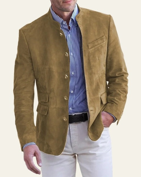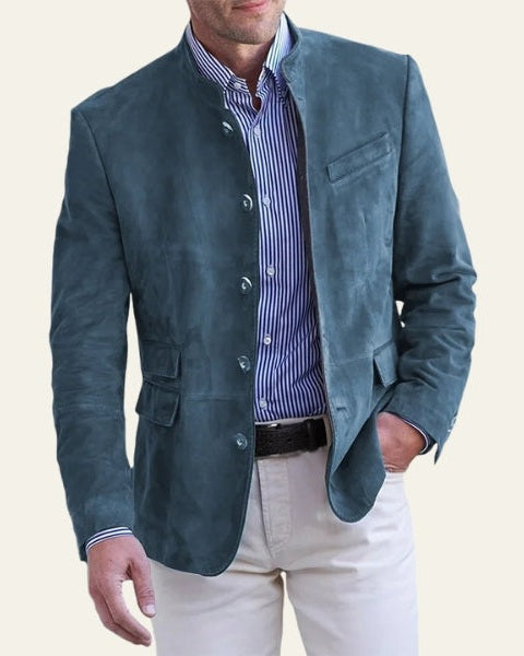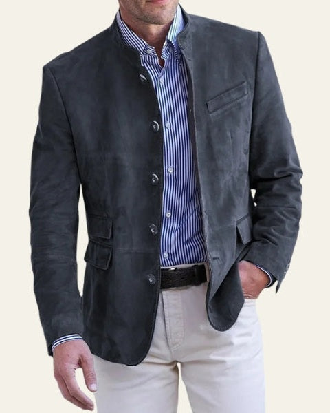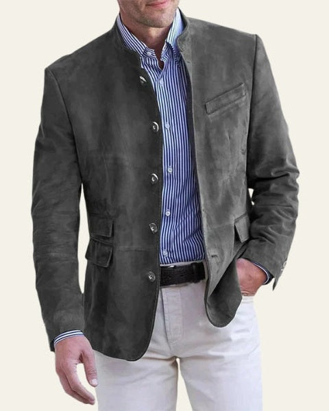 La giacca Aurazio in similpelle vegana propone una finitura morbida dall’effetto suede e una linea pulita grazie a una lavorazione strutturata. Il tocco vellutato e la chiusura frontale a bottoni ne fanno un capo confortevole da indossare tutto l’anno, perfetto da abbinare a camicie, denim o layering smart-casual.