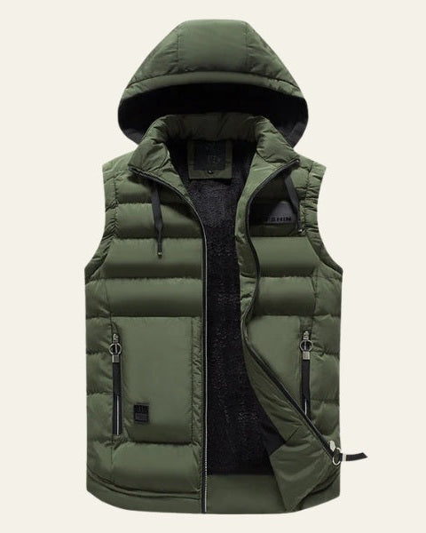 Questo gilet imbottito con cappuccio è pensato per offrire calore leggero e versatilità in outdoor. La superficie in shell tecnica liscia, abbinata a una fodera interna morbida, assicura comfort durante le stagioni di transizione. È ideale da indossare da solo o come strato intermedio sopra maglioni o sotto una giacca, per un look casual o per attività all'aperto.