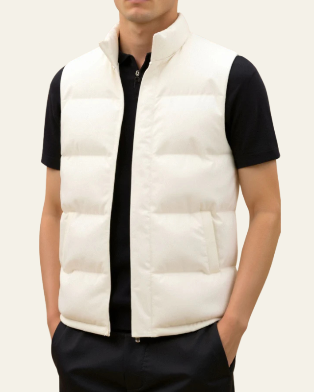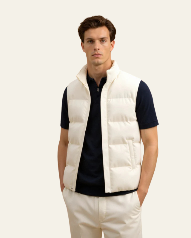 Questo gilet imbottito offre una versione raffinata di un capo essenziale per la stratificazione moderna. Leggero ma strutturato, unisce comfort e sobria eleganza, perfetto per la mezza stagione o per weekend fuori porta. Da indossare sopra maglioni o capi leggeri, con un tocco Riviera, firmato Aurazio.