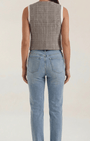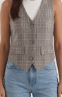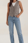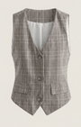 Il gilet Harmonia di Aurazio è un tocco di raffinata sartorialità pensato per la donna contemporanea. Realizzato in tessuto di alta qualità con motivo Glen plaid, propone un taglio su misura che definisce delicatamente la silhouette e offre tasche con patta e chiusura frontale a bottoni. Il profondo scollo a V e l'orlo curvo aggiungono una nota femminile a una linea ispirata al guardaroba maschile.