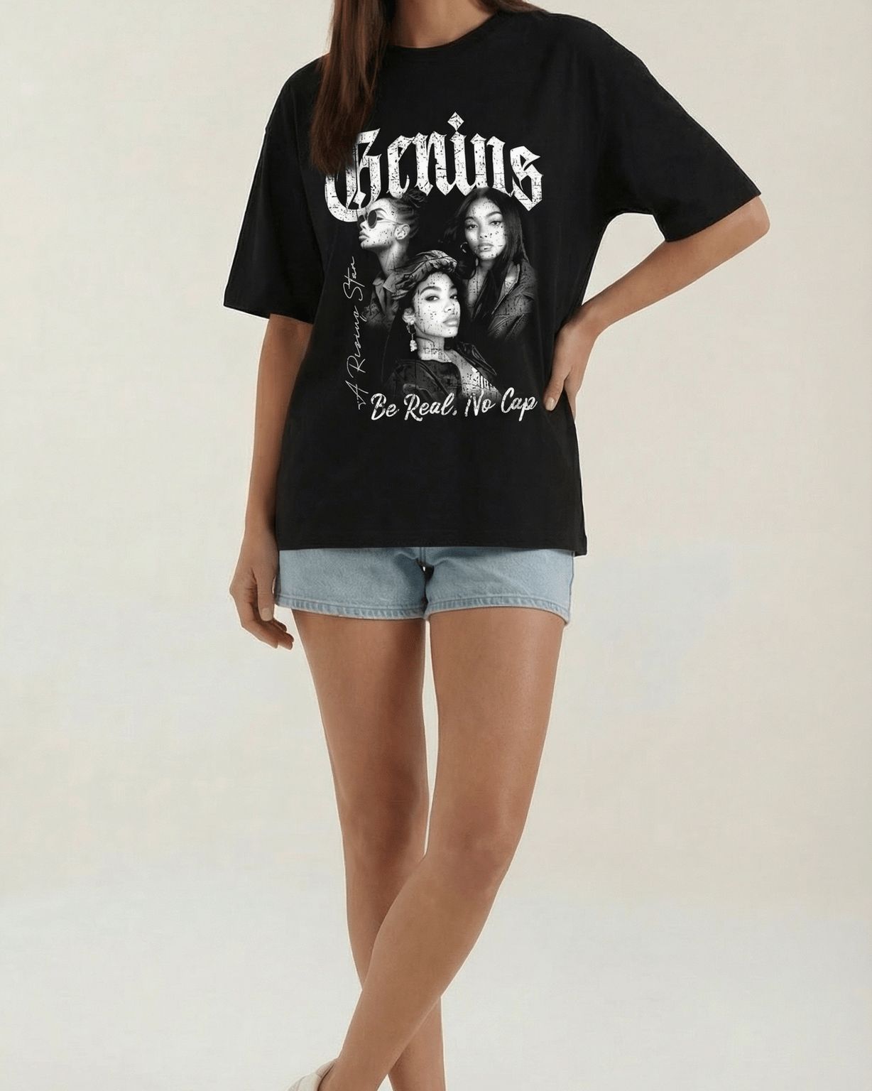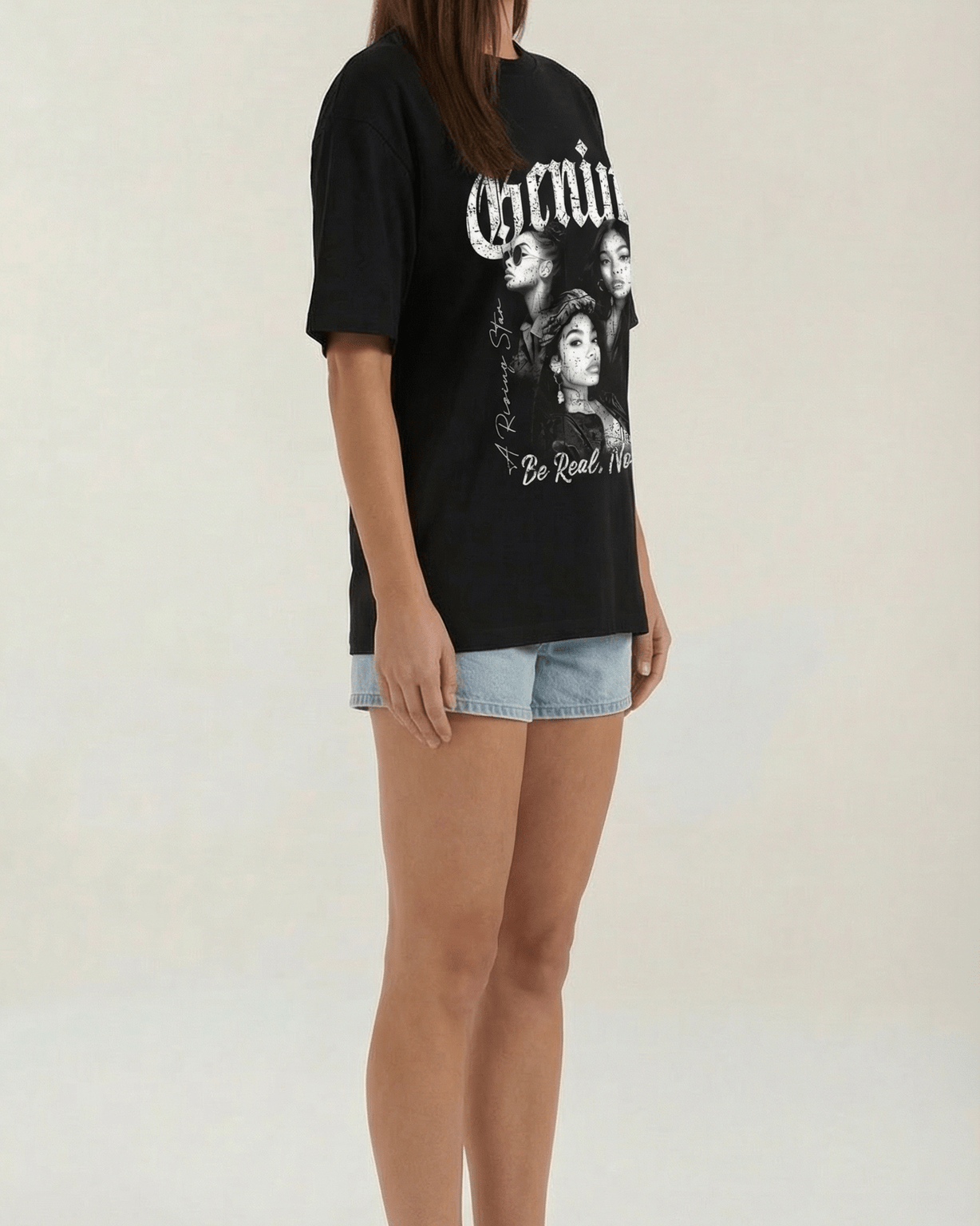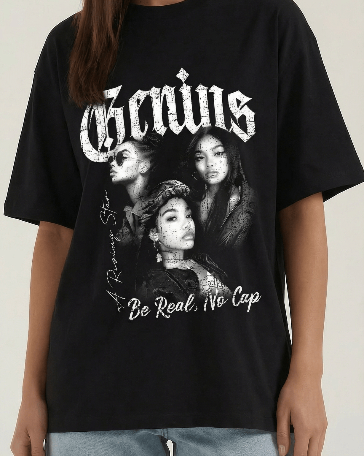 La maglietta grafica oversize di Aurazio unisce comfort e stile deciso: una silhouette ampia con spalle cadenti per un effetto rilassato ma curato. La stampa grafica, ispirata al vintage, presenta caratteri gotici audaci per una presenza sicura. Il tessuto pesante conferisce una sensazione di lusso e mantiene la forma nel tempo, rendendola ideale da indossare con jeans o stratificata con una giacca per un look urbano e contemporaneo.