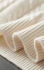 - Motivo a righe nautiche con dettagli a treccia che aggiungono texture