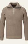 Il maglione a mezza zip di Aurazio unisce eleganza alpina e comfort quotidiano grazie a una maglia dall'intreccio testurizzato che regala calore strutturato e una sensazione morbida al tatto. È ideale come strato intermedio sopra camicie o T-shirt, perfetto per weekend raffinati, viaggi e serate fresche. Il taglio è naturalmente rilassato ma ben sagomato, offrendo una vestibilità comoda senza rinunciare a una linea sartoriale.