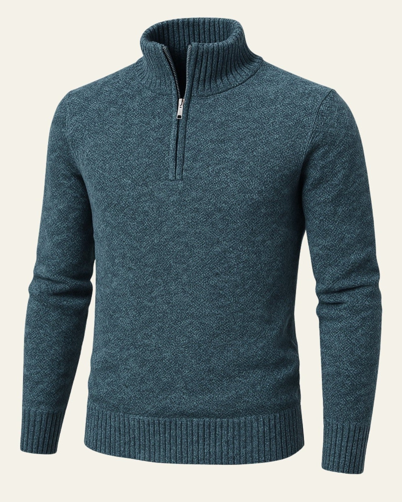 Aurazio Maglione Testurizzato Con Zip A Metà Da Uomo