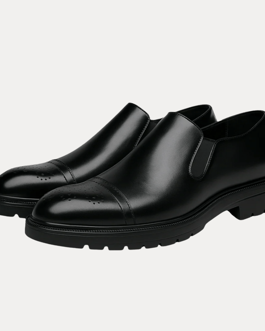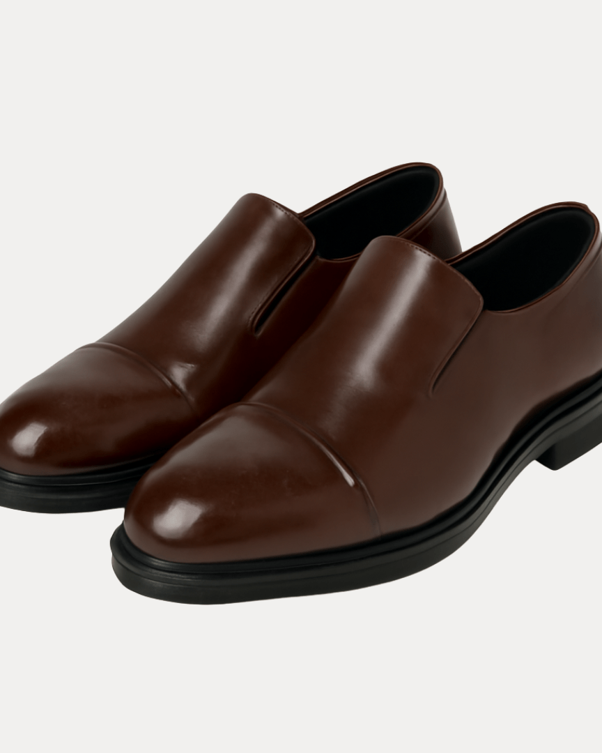 Questo paio di mocassini Aurazio unisce stile sobrio e comfort quotidiano. Realizzati in pelle sintetica liscia con fodera morbida, garantiscono una calzata comoda e stabile. Gli inserti elastici permettono una facile indossabilità senza rinunciare al sostegno. Il puntale a cuffia con forature brogue discrete aggiunge un tocco di raffinatezza. La suola in gomma antiscivolo e il tacco basso completano una silhouette essenziale ma versatile. Sono la scelta ideale per l'ufficio, i viaggi e occasioni formali durante tutto l'anno. Facili da abbinare a pantaloni eleganti o casual, si prendono cura con una pulizia delicata e l'applicazione di lucido neutro.