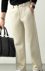 - Taglio a gamba dritta con linea pulita, adatto a look formali e casual.