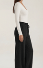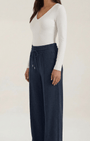 - Gamba ampia per una silhouette fluida e movimenti liberi