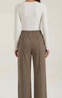 I Pantaloni di Aurazio uniscono comfort da loungewear a una silhouette dall'allure raffinata: gamba ampia, vita alta con elastico e cordino regolabile, e cuciture frontali strutturate che definiscono la linea. Il tessuto morbido offre struttura senza rinunciare al comfort, rendendoli ideali per look quotidiani che passano facilmente dalla casa all'ufficio o all'aperitivo.