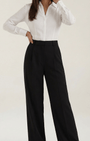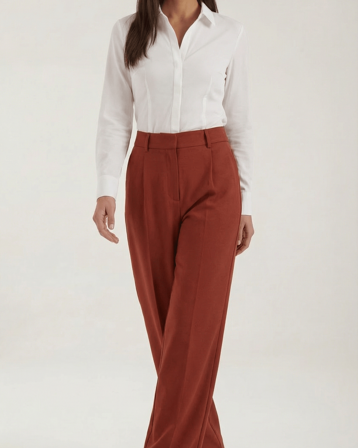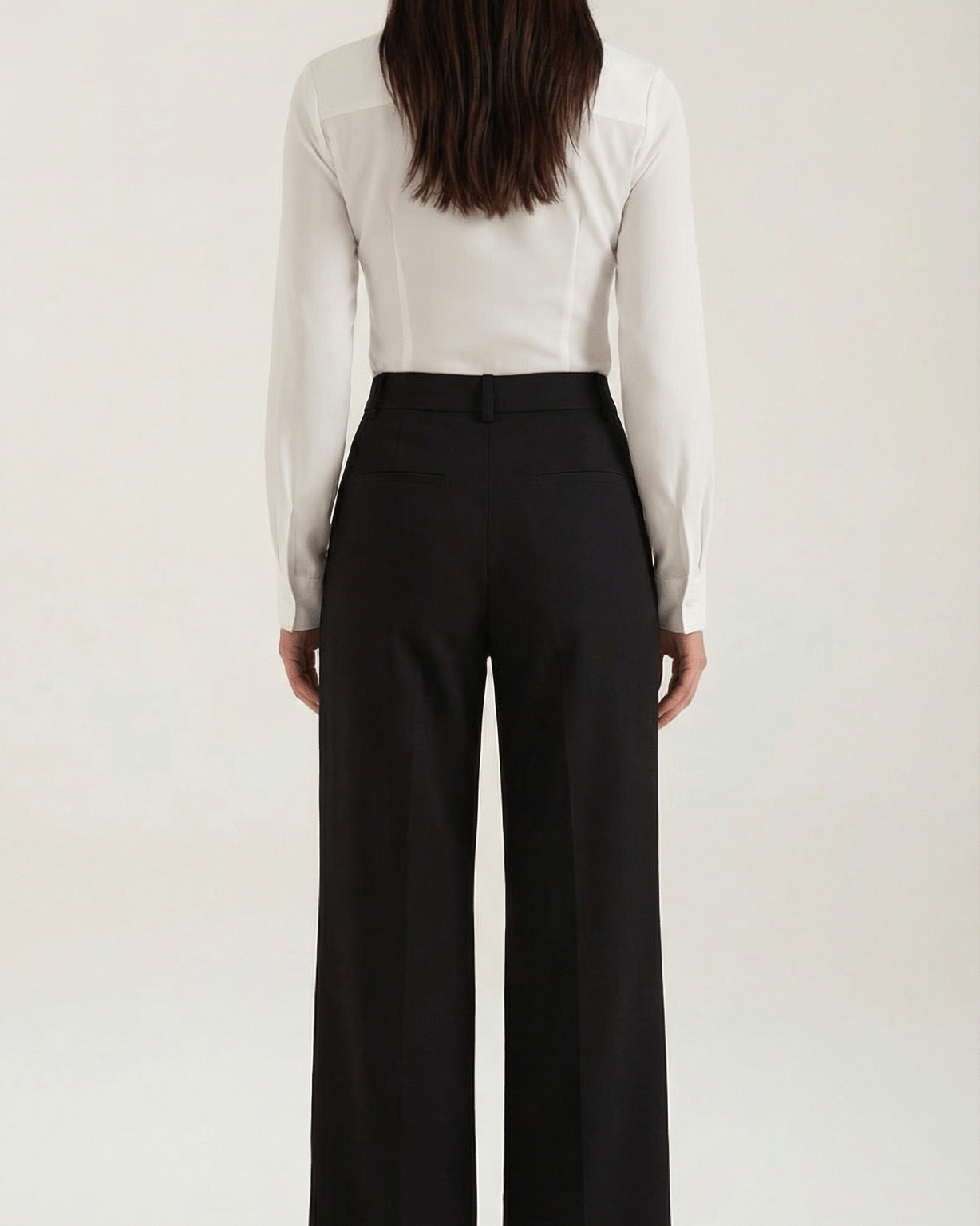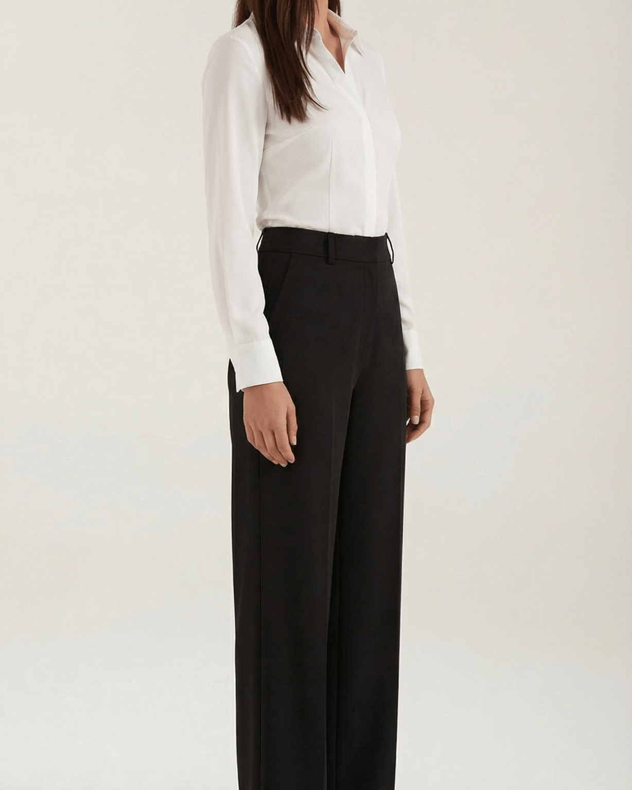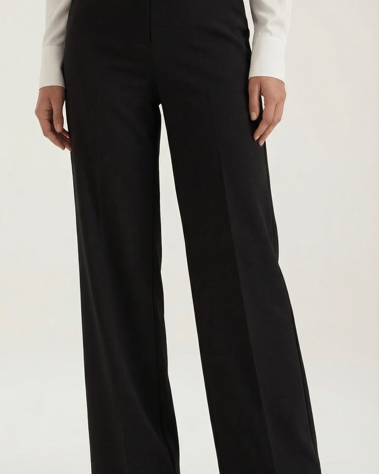 - Vita alta e gamba ampia per comfort e silhouette slanciata