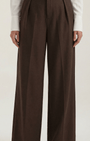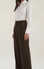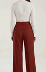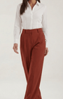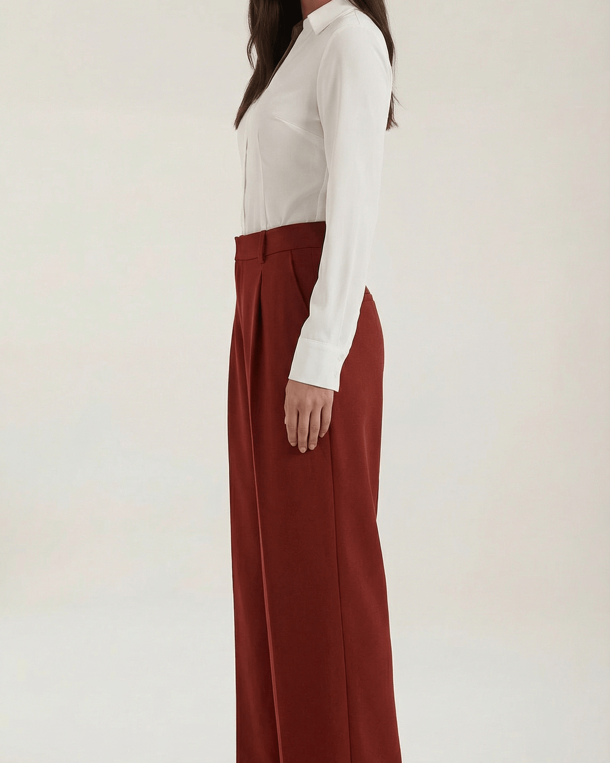 I Pantaloni Hazel di Aurazio reinterpretano la perfezione sartoriale in una silhouette a gamba larga, con vita alta e delicate pieghe frontali realizzate in tessuto premium. Il tessuto pesante conferisce sostanza ed eleganza, mentre le pinces frontali enfatizzano una silhouette drammatica. Progettate con tasche laterali che mantengono linee pulite, si prestano a look raffinati dall’ufficio a cene urbane, offrendo comfort quotidiano e versatilità.