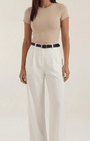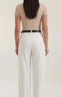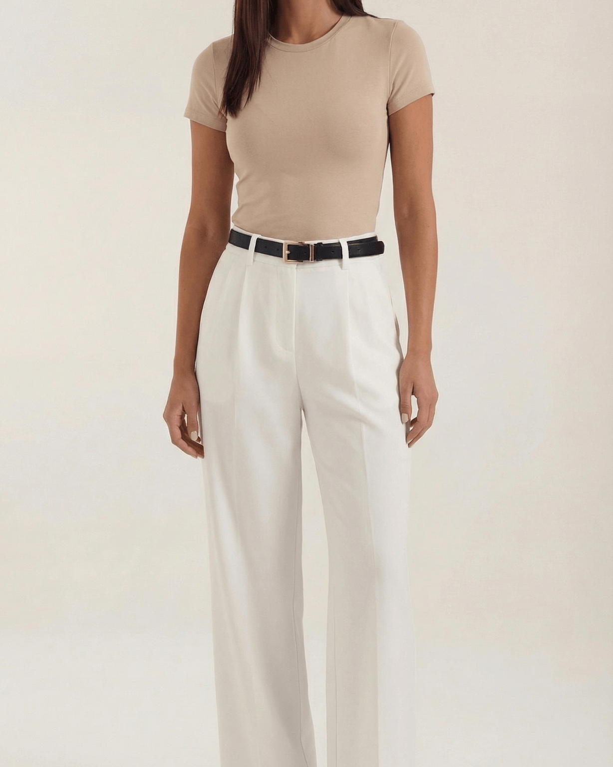 I pantaloni Aurazio a vita alta definiscono una presenza professionale con una silhouette allungata, grazie alle pieghe frontali e alla linea pulita della cintura. Realizzati in tessuto intrecciato di lusso, offrono struttura nitida e minimo allungamento per una caduta che resta perfetta dall'ufficio agli incontri serali. Progettati per accompagnarti con comfort durante i movimenti decisivi, sono un capo che aggiunge sicurezza a ogni look da power dressing.