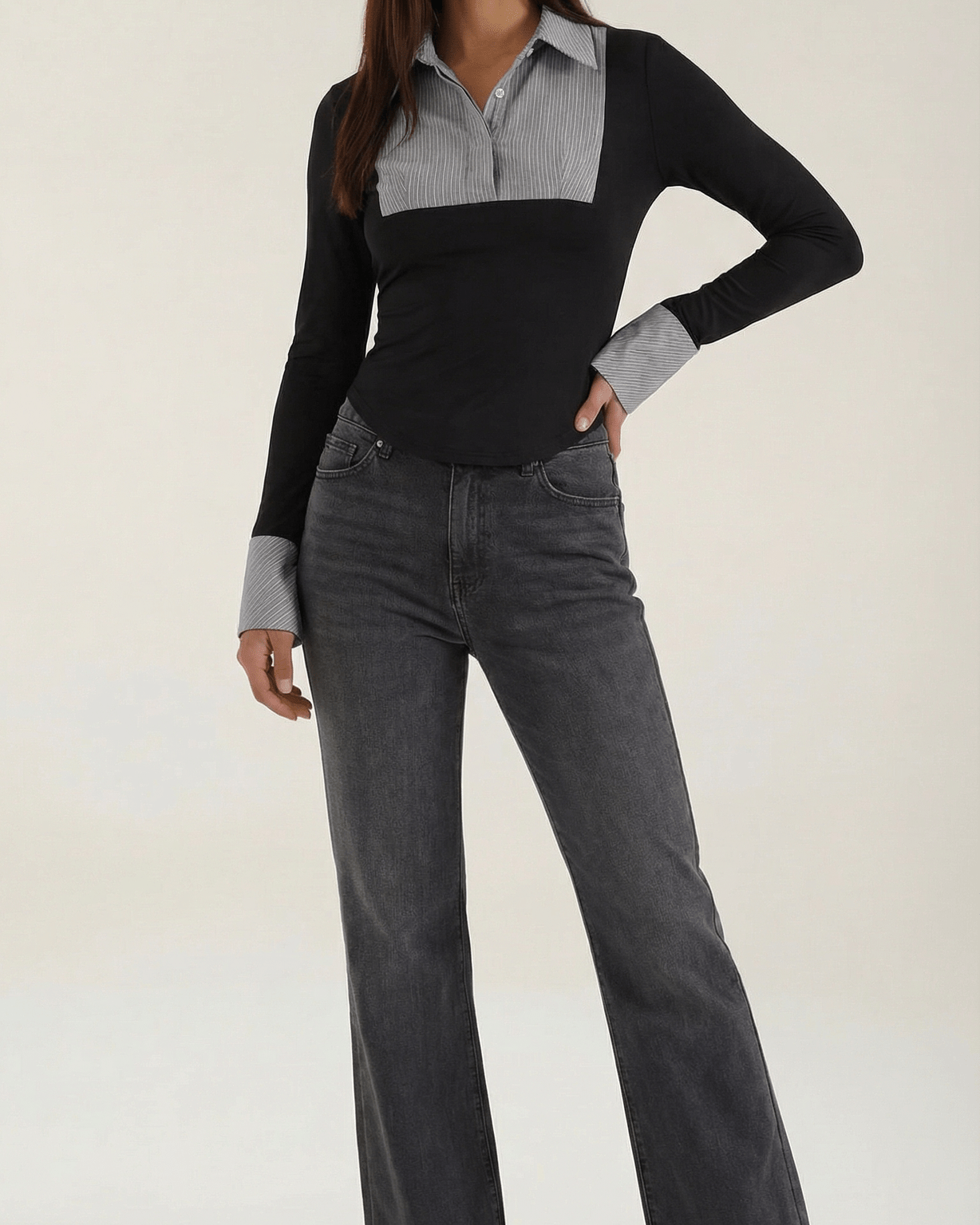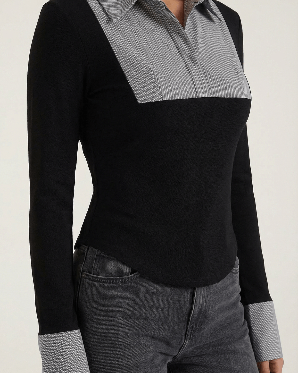 - Maniche lunghe terminate da polsini coordinati