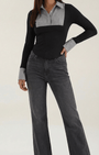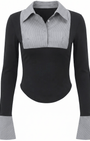 - Dettaglio bib plissé a contrasto con colletto classico