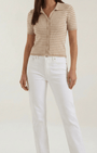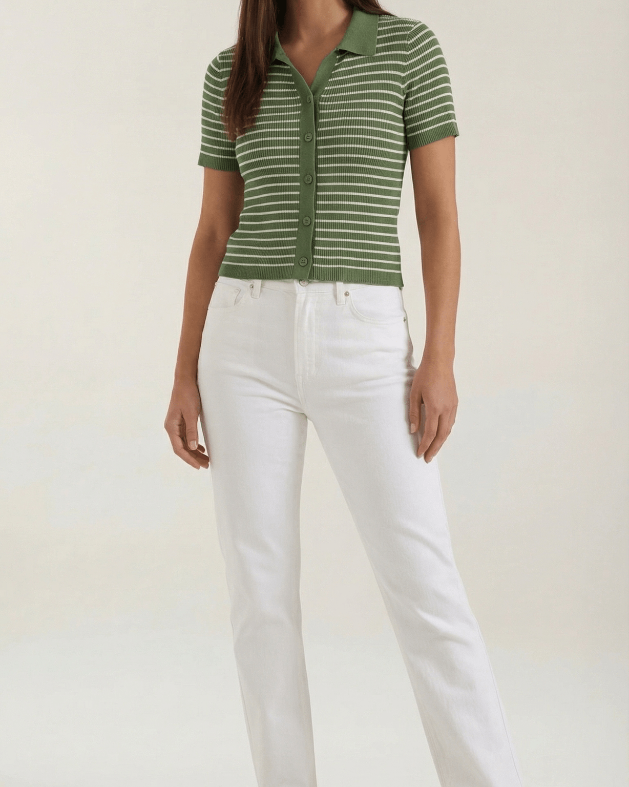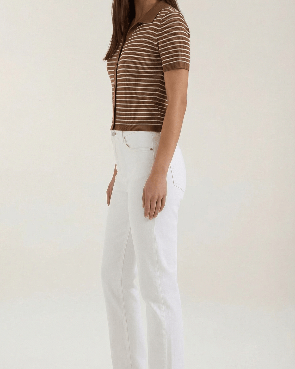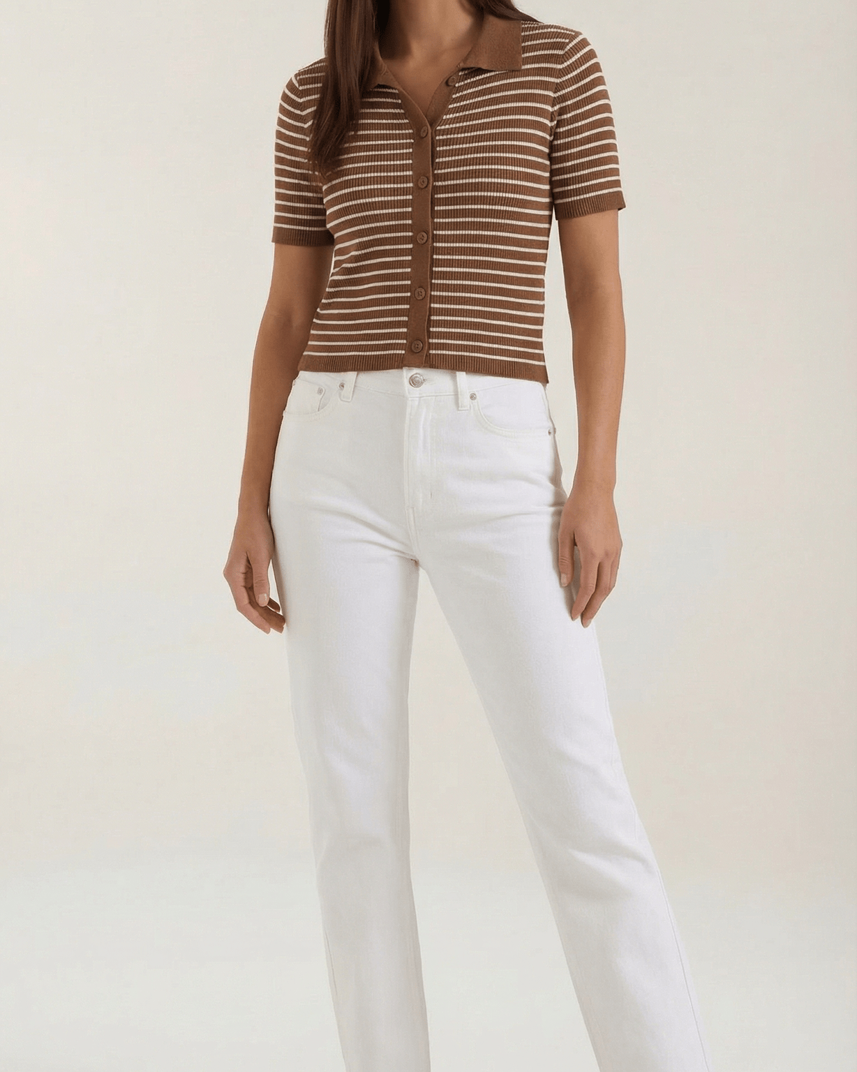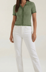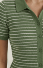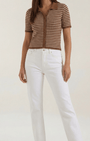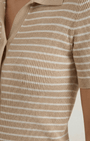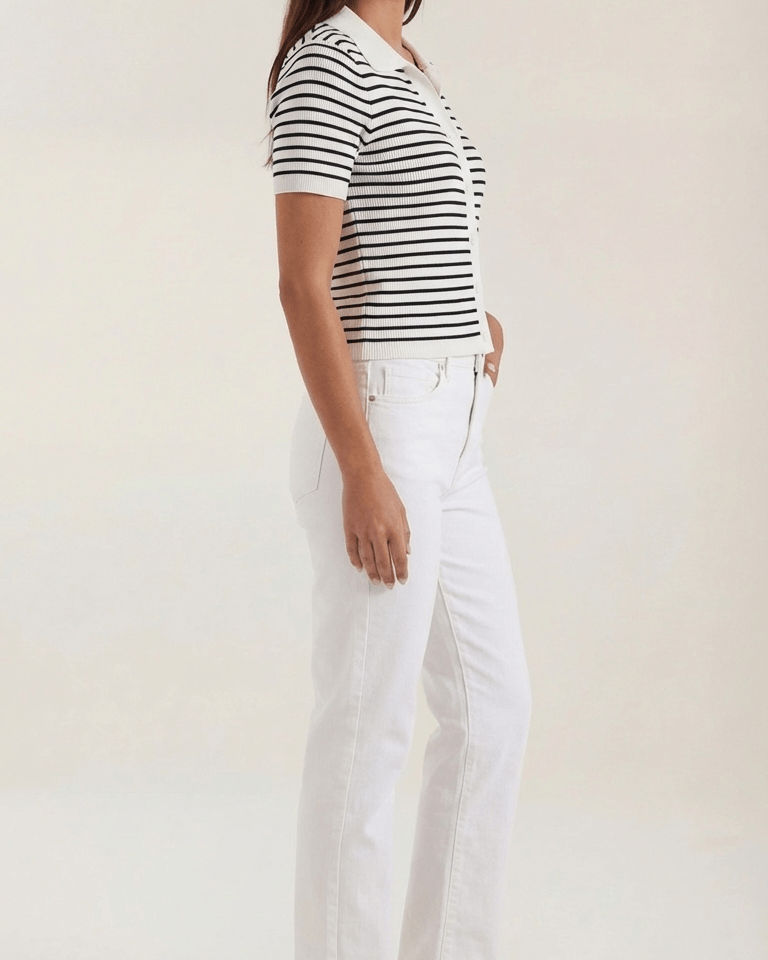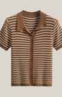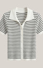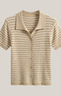 La Polo a righe Aurazio aggiunge un tocco preppy‑cool al guardaroba quotidiano. Realizzata in maglia traspirante, garantisce comfort tutto il giorno e una vestibilità cropped che valorizza i capi a vita alta. Il motivo a righe conferisce un fascino retrò giocoso, mentre la chiusura frontale a bottoni offre diverse possibilità di styling per look casual o più curati.