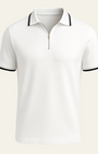 Questa polo con zip a metà è realizzata in tessuto morbido, con una texture liscia e una silhouette moderna che unisce informalità e raffinatezza. Il dettaglio a contrasto aggiunge carattere senza appesantire l’insieme, rendendola ideale per weekend rilassati, serate estive o layering con capi su misura per un tocco Riviera.