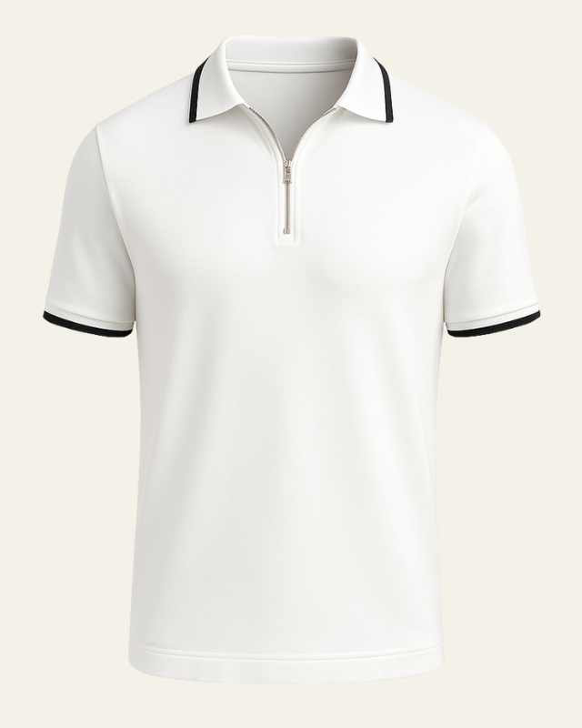 Aurazio Polo con Zip a Metà da Uomo con Dettaglio a Contrasto