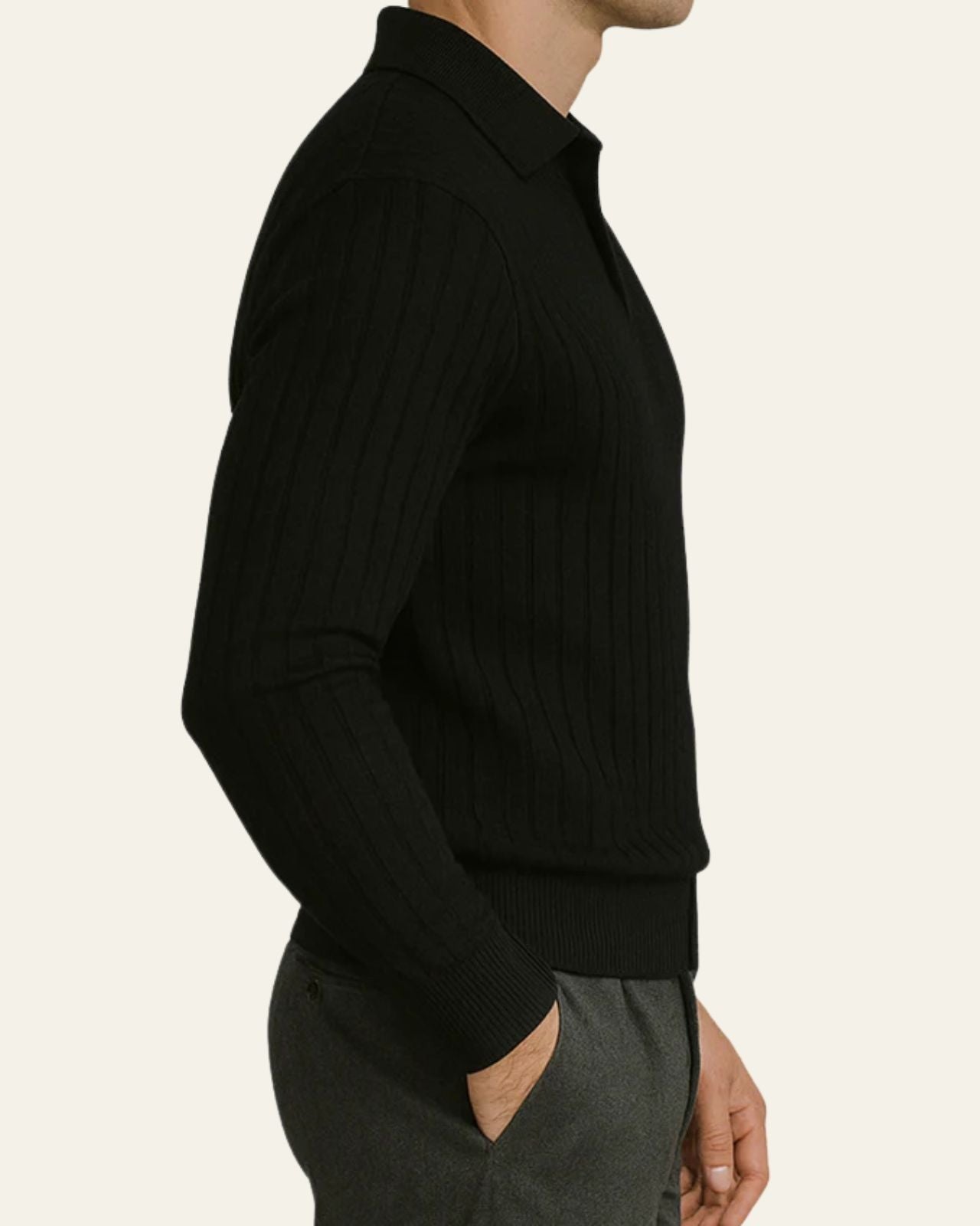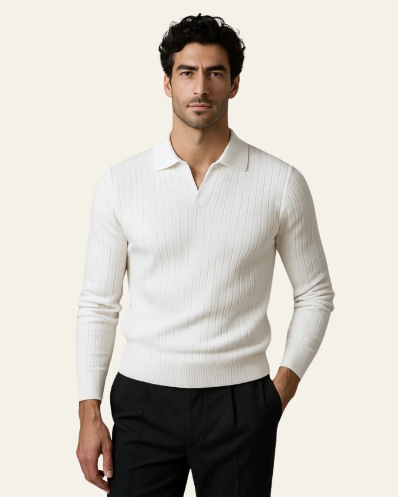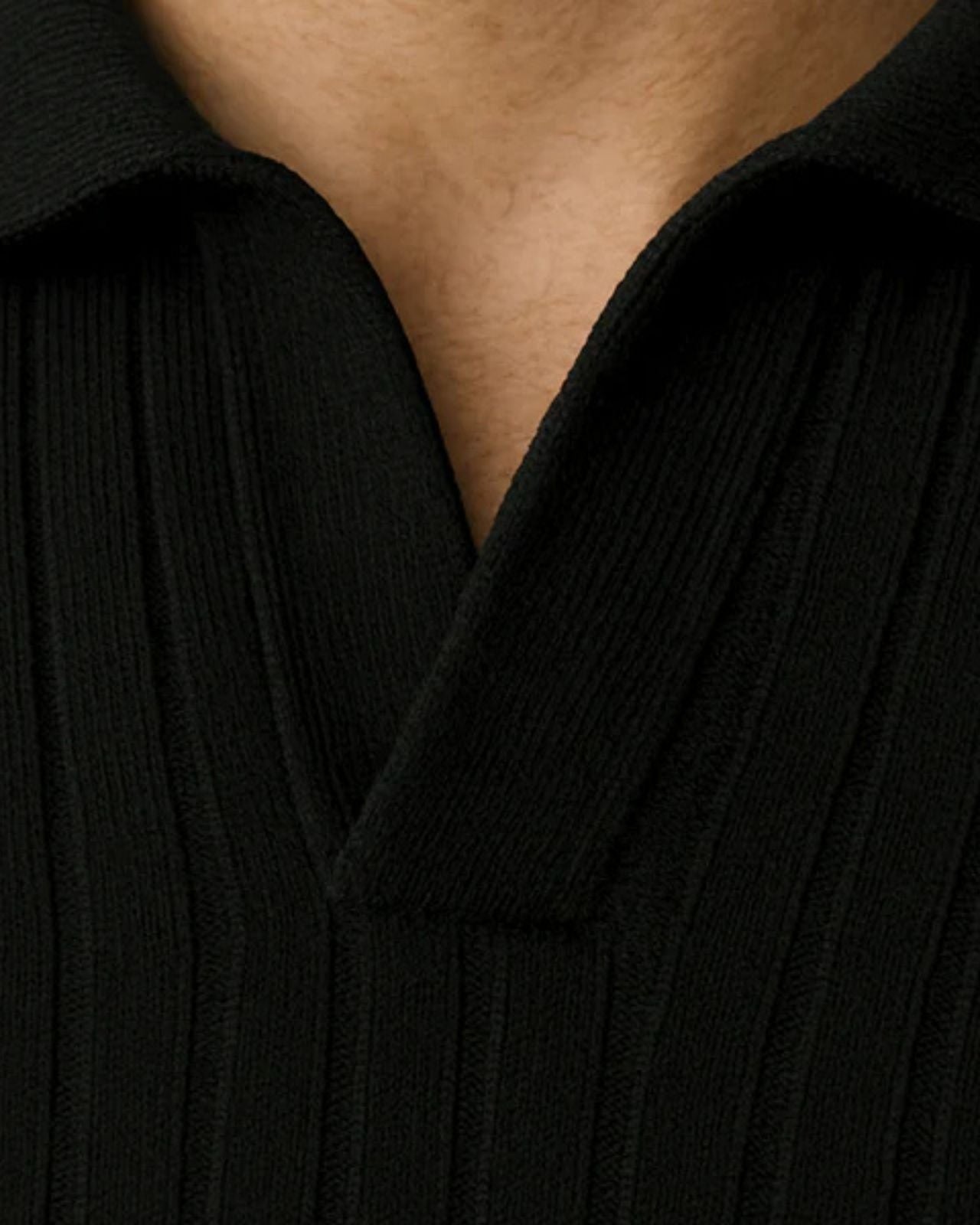 Elegante polo da uomo realizzata in maglia a coste, pensata per chi apprezza un minimalismo raffinato e comfort per tutto il giorno. La texture morbida e leggera offre un tocco setoso al tatto, garantendo libertà di movimento e una silhouette pulita. Progettata per durare nel tempo, Aurazio accompagna il tuo stile con una qualità senza compromessi.
