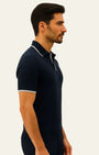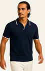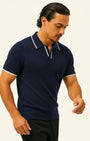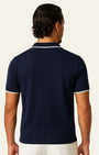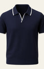 La Polo Edge in maglia firmata Aurazio unisce raffinatezza europea a un comfort quotidiano. Realizzata in tessuto a maglia morbido e leggermente strutturato, in blu navy lucente con accenti bianchi, offre una silhouette pulita e una piacevole facilità di movimento. Progettata per durare nel tempo, valorizza dettagli e lavorazione di qualità per look da mare o aperitivi serali.