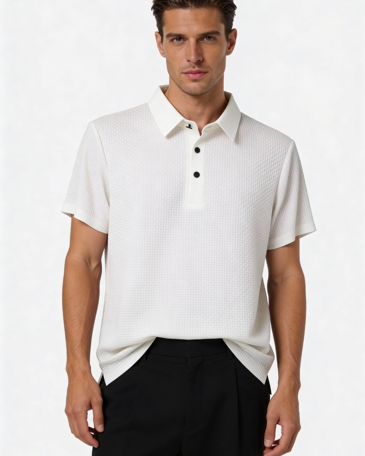 Questa polo in piqué è pensata per il caldo estivo, offrendo una struttura pulita e comfort leggero grazie a una trama testurizzata che migliora l'afflusso d'aria. Progettata da Aurazio, unisce leggerezza, comfort duraturo e stile moderno, rendendola ideale per look casual e outfit quotidiani.