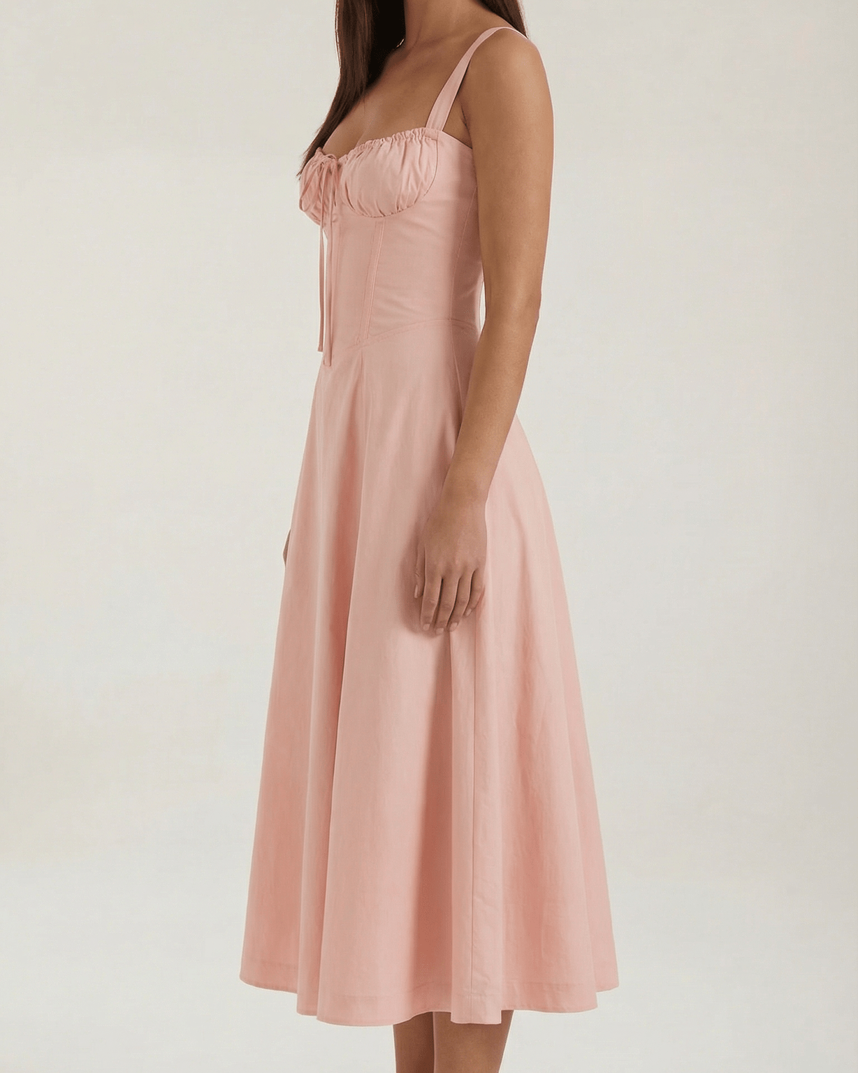 Vestito Midi Jade con Allacciatura Aurazio Aurazio presenta un vestito midi Jade con allacciatura che incarna la romantica leggerezza dell’estate. Il taglio mette in risalto una silhouette femminile con scollo a cuore e dettaglio frontale regolabile, mentre la gonna a linea A drappeggia con grazia e consente movimenti fluidi. Un capo versatile, adatto a celebrazioni di giorno come a uscite serali, che aggiunge un tocco di raffinatezza discreta a ogni look.
