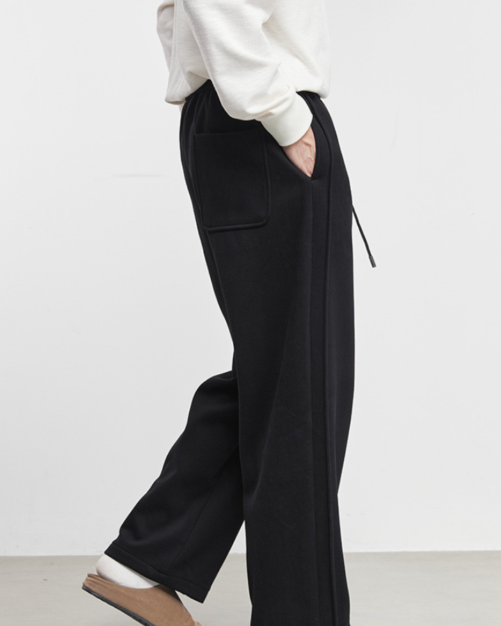 Questi pantaloni in felpa di cotone, firmati Aurazio, offrono comfort quotidiano. Realizzati in una morbida miscela di cotone con interno in fleece, garantiscono calore leggero e morbidezza senza appesantire. Il taglio a gamba ampia e la vita con cordino si muovono con te, regalando una silhouette moderna e versatile per momenti di relax, stratificazione e uso quotidiano.