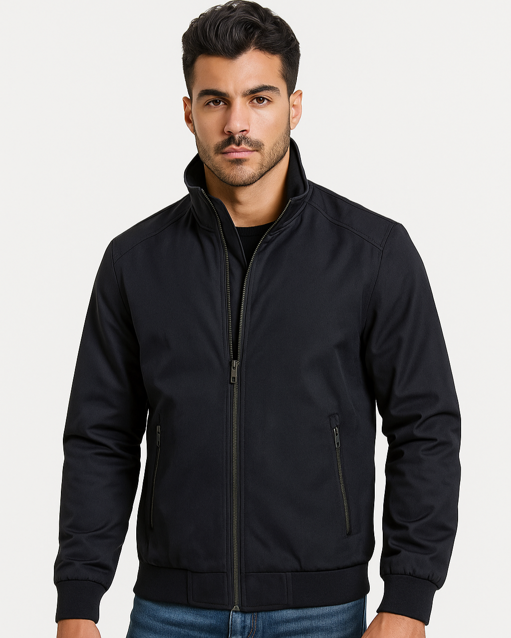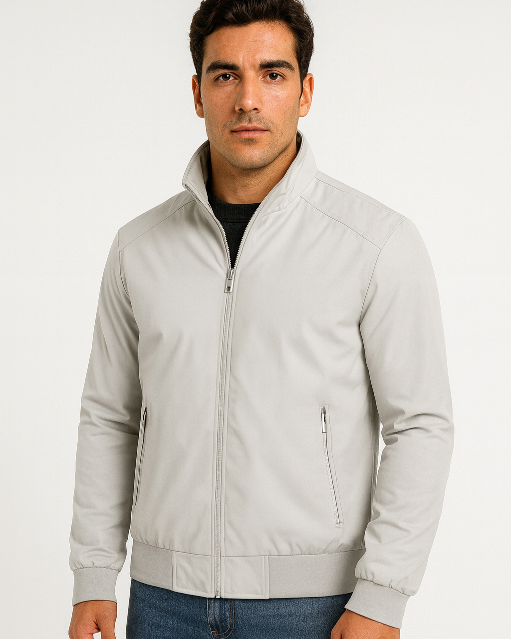 - Linea Harrington-bomber — profilo essenziale con zip frontale pulita.