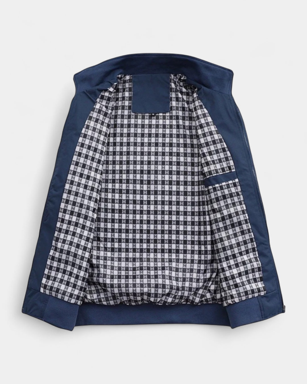 Il bomber contemporaneo di Aurazio unisce funzionalità e design pulito. Il tessuto esterno è trattato per resistere al vento e alla pioggia leggera, mentre la fodera a quadri tipo windbreaker offre calore traspirante quando le temperature scendono.