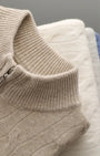 - Texture cable-knit e colletto a coste che elevano l'aspetto