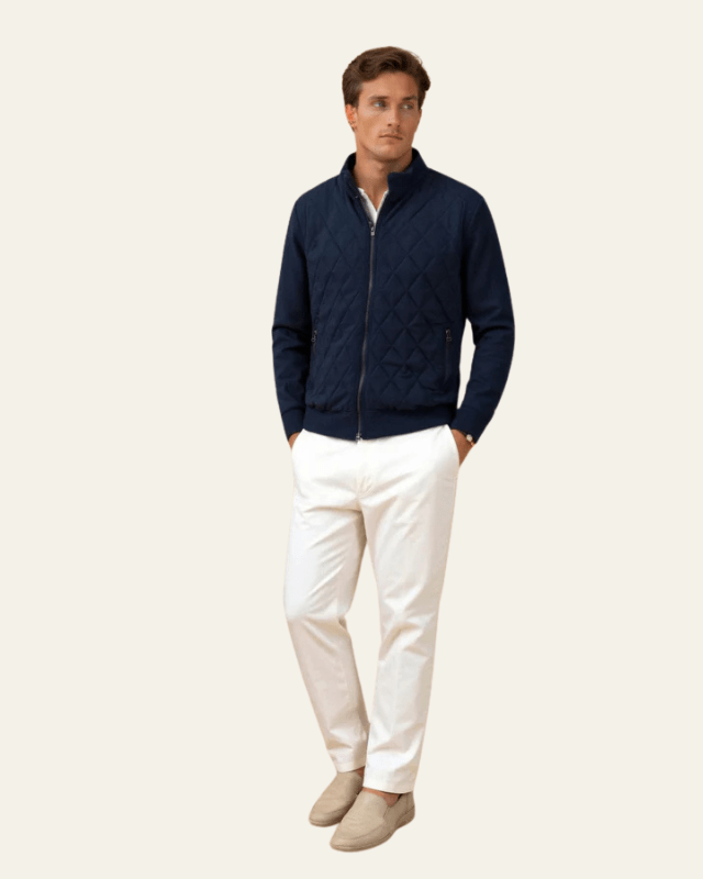 Questa giacca trapuntata leggera unisce raffinatezza contemporanea a un design ispirato al patrimonio. Leggera ma strutturata, offre una silhouette sciancrata che facilita i movimenti, mentre la trapuntatura a diamante aggiunge texture e sobria eleganza quotidiana. Pensata per chi cerca comfort, versatilità e facilità di layering, è perfetta per la mezza stagione e si abbina facilmente a cardigan, maglioni o cappe leggere.